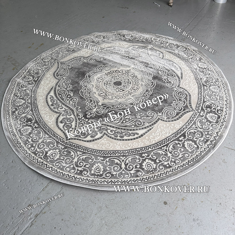 Шикарный Круглый ковер в гостиную дизайн 01 Серый наполняет интерьер квартиры теплом и уютом, гармонично сочетает в себе изящество и красоту. Он изготовлен из износостойких материалов, комфортный и долговечный.
