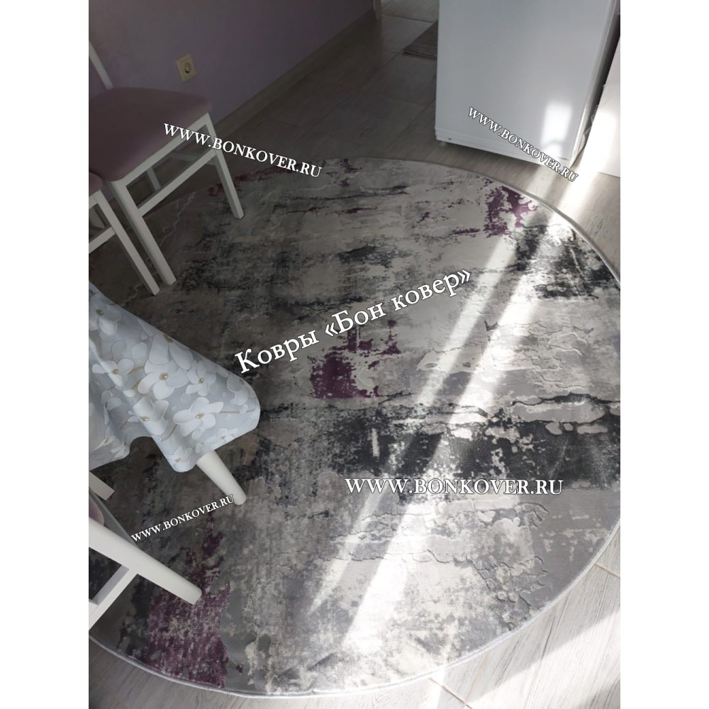 Импозантный Круглый Турецкий Ковер Сиреневый с Серым Дизайн 30409 наполняет интерьер помещения теплом и уютом, гармонично сочетает в себе изящество и красоту. Он выполнен из высококачественных материалов, прочный и долговечный.