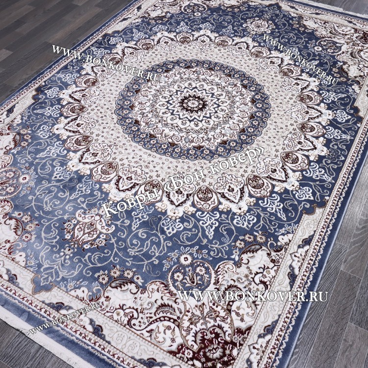 Красивый Турецкий Ковер для гостиной дизайн 017 Синий наполняет интерьер квартиры теплом и уютом, гармонично сочетает в себе изящество и красоту. Он изготовлен из экологически чистого сырья, прочный и долговечный.